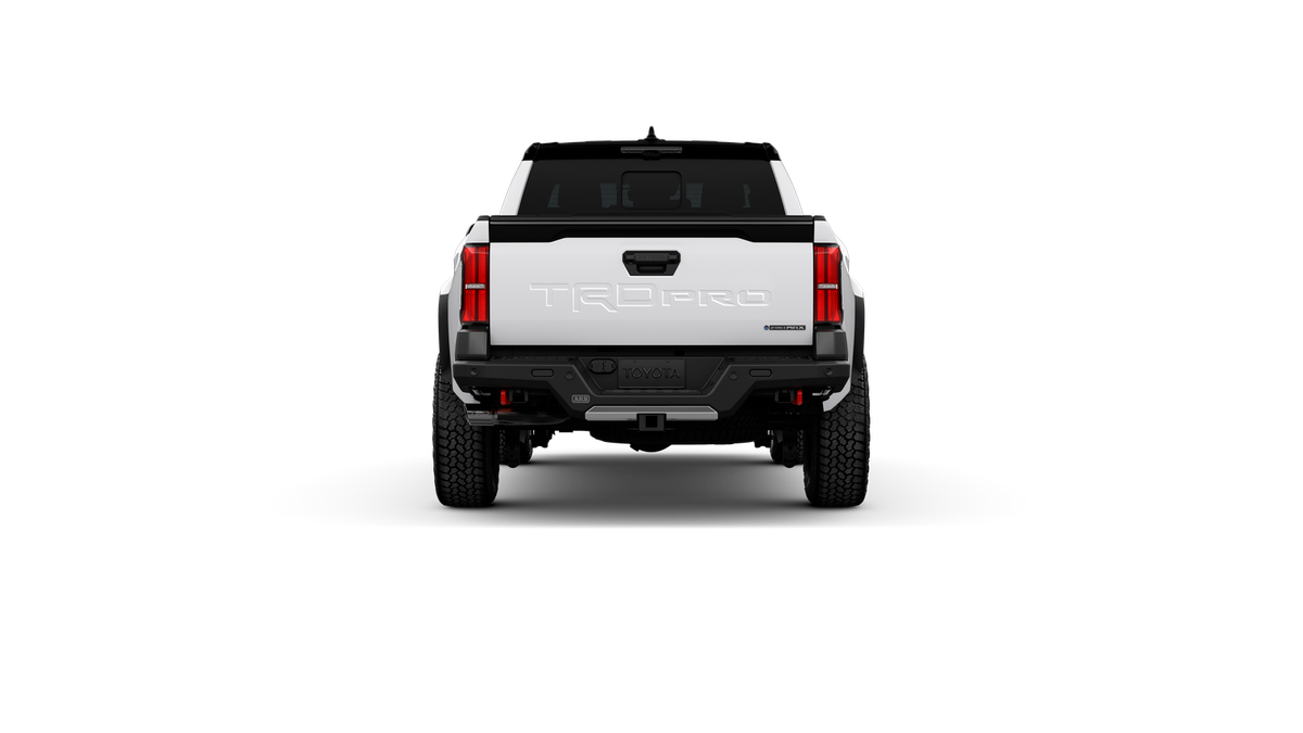 - "TRD Pro" stamped power open-and-close tailgate with hands-free knee-lift assist, integrated taillight bump switches, and jam protection