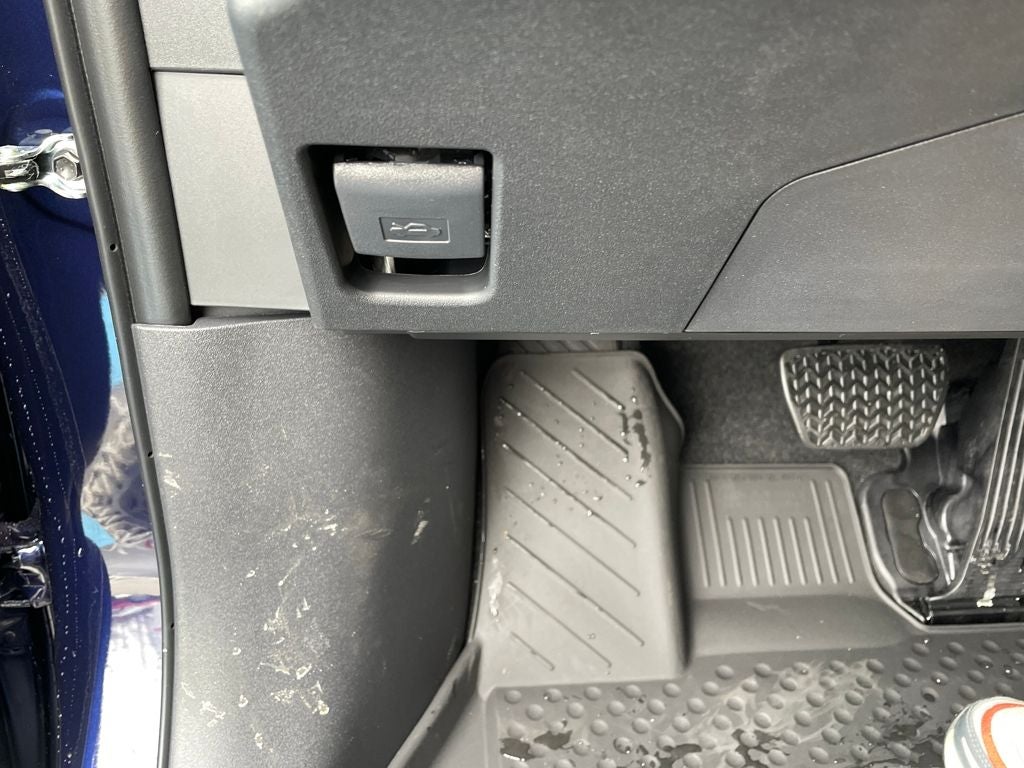 - Black carpet flooring with driver-side footrest