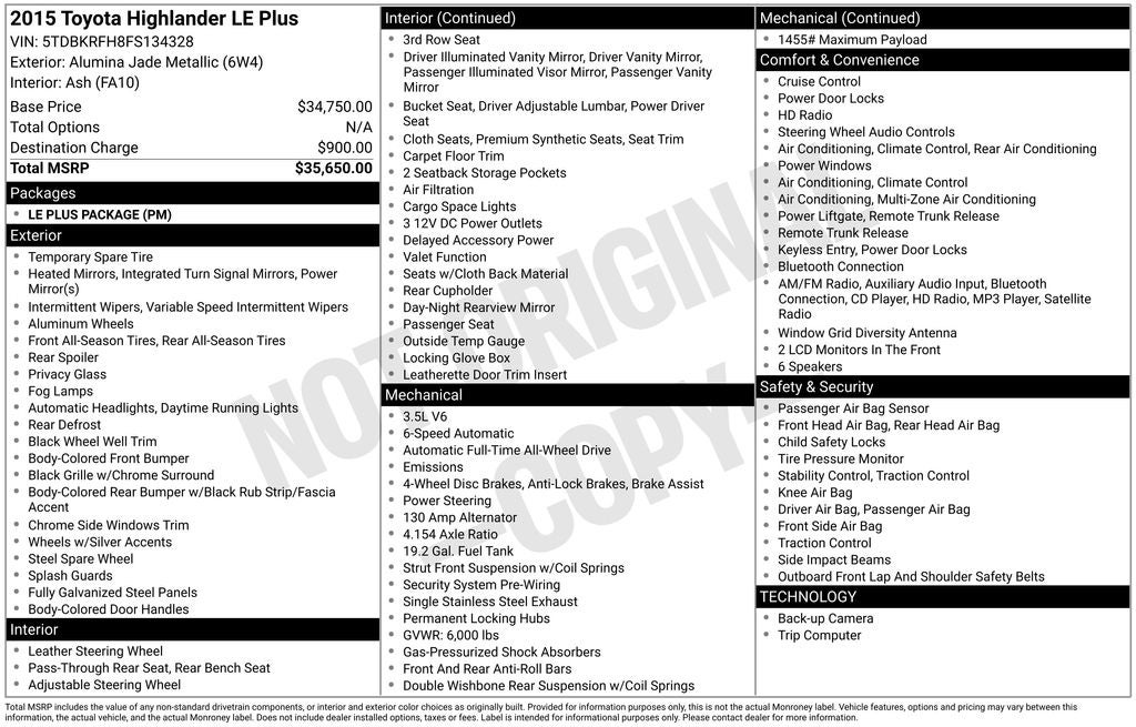 - Vehicle Name: Toyota Highlander