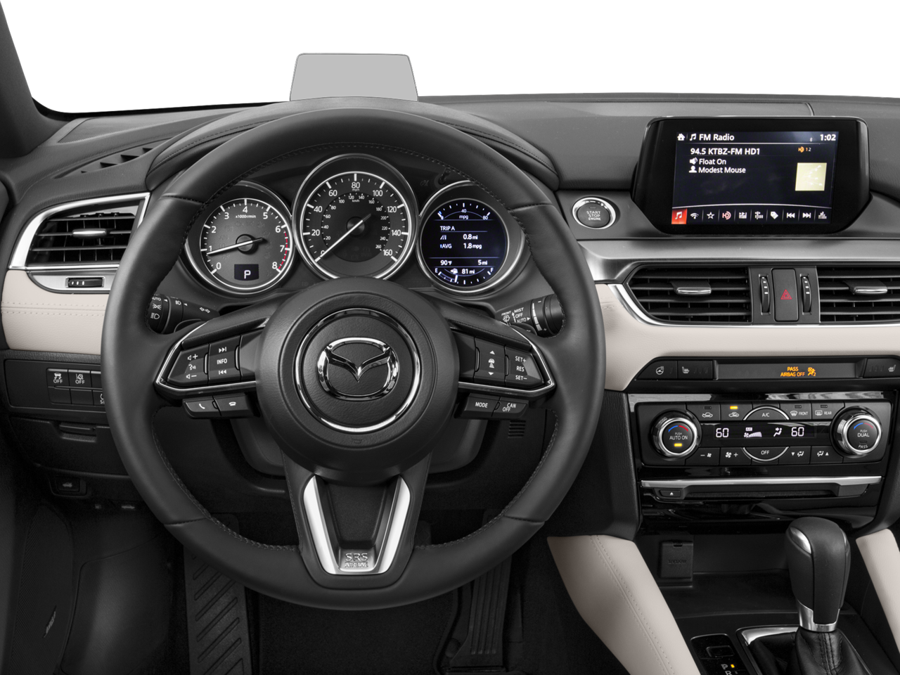 - Radio: AM/FM/CD/MP3/AUX BOSE 11-Speaker & HD Radio -inc: audio menu voice-command, Bluetooth® hands free phone and audio, E911 automatic emergency notification, 7.0" full-color touch-screen display for audio, phone, rearview camera (and available RCTA and navaigation system), multi-function commander control for touch-screen display, Mazda navigation system, Aha, Pandora and Stitcher internet radio compatibility, Radio Broadcast Data System (RBDS) program information, SiriusXM satellite radio w/4-month trial subscription and roof-mounted shark fin antenna, SMS text message audio delivery and reply and USB audio input
