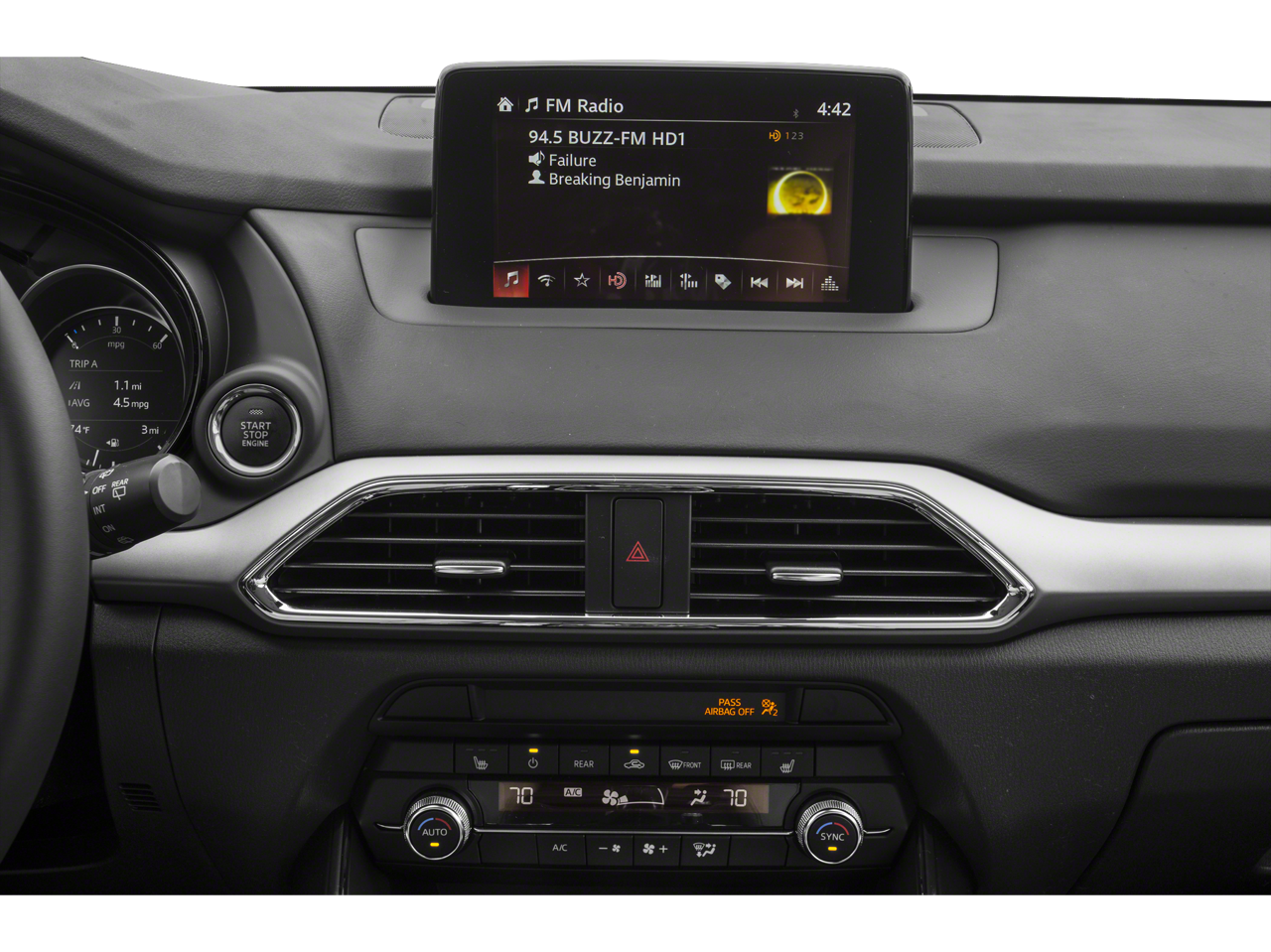 Step inside and be captivated by the CX-9's luxurious interior, featuring leather-trimmed seats, heated front buckets, and a wealth of intuitive technology. The Mazda Navigation System and Bose Premium Audio system will elevate your commute, while the Power Sliding Glass Moonroof allows you to enjoy the great outdoors.