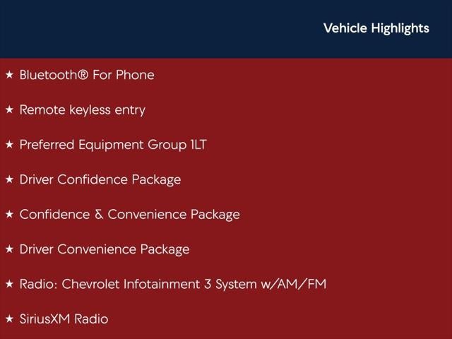 Silver Ice Metallic LT FWD 6-Speed Automatic Electronic with Overdrive 1.5L DOHC Back Up Camera, Bluetooth®, Clean History Report, a Clean Carfax, Jet Black w/Premium Cloth Seat Trim, 17 Aluminum Wheels, 2 Rear USB Charging-Only Ports, 2 USB Ports & Auxiliary Input Jack, 2-Way Power Driver Lumbar Control Seat Adjuster, 3-Spoke Leather-Wrapped Steering Wheel, 3.50 Final Drive Axle Ratio, 4-Wheel Disc Brakes, 6 Speaker Audio System Feature, 8-Way Power Driver Seat Adjuster, ABS brakes, Apple CarPlay/Android Auto, Bluetooth® For Phone, Brake assist, Confidence & Convenience Package, Driver Confidence Package, Driver Convenience Package, Dual front impact airbags, Dual front side impact airbags, Dual Zone Automatic Climate Control, Electronic Stability Control, Emergency communication system: OnStar and Chevrolet connected services capable, Four wheel independent suspension, Front anti-roll bar, Front Passenger 4-Way Manual Seat Adjuster, Fully automatic headlights, Heated Driver & Front Passenger Seats, High-Intensity Discharge Headlights, Lane Change Alert w/Side Blind Zone Alert, Low tire pressure warning, Occupant sensing airbag, Outside Heated Power-Adjustable Mirrors, Overhead airbag, Passenger door bin, Preferred Equipment Group 1LT, Radio: Chevrolet Infotainment 3 System w/AM/FM, Rear anti-roll bar, Rear Cross Traffic Alert, Rear Park Assist w/Audible Warning, Rear Power Liftgate, Rear window defroster, Rear window wiper, Remote keyless entry, Remote Vehicle Starter System, Security system, SiriusXM Radio, Speed control, Speed-sensing steering, Telescoping steering wheel, Tilt steering wheel, Traction control, Universal Home Remote, Variably intermittent wipers.