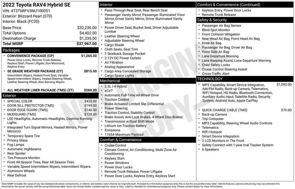 Excludes tax, tag, title and registration. Price includes Dealer Processing Charge (not required by law):$799