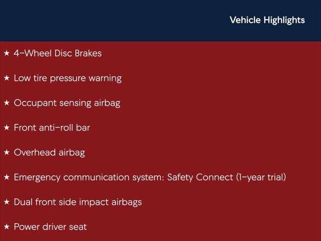 - Emergency SOS Capable Safety Connect (1-year trial) vehicle integrated emergency SOS system